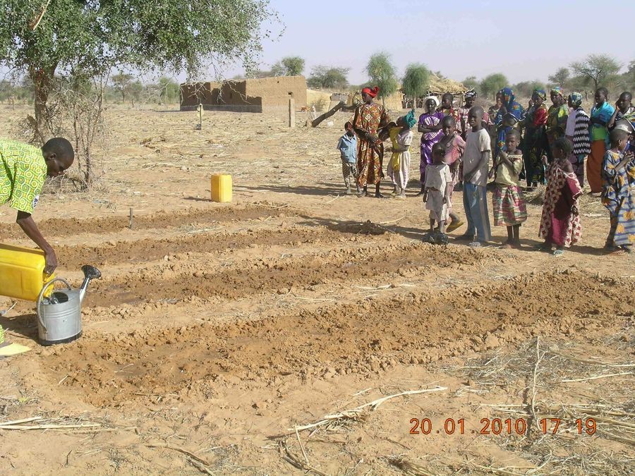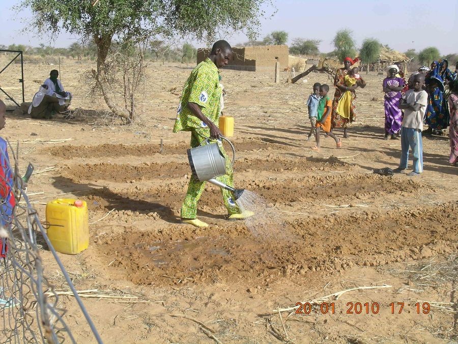 La réalisation d'un jardin maraîcher en Terre Sahélienne ne peut se faire sans une formation préalable auprès des villageois. Ces formations sont dispensées par un spécialiste agronome.